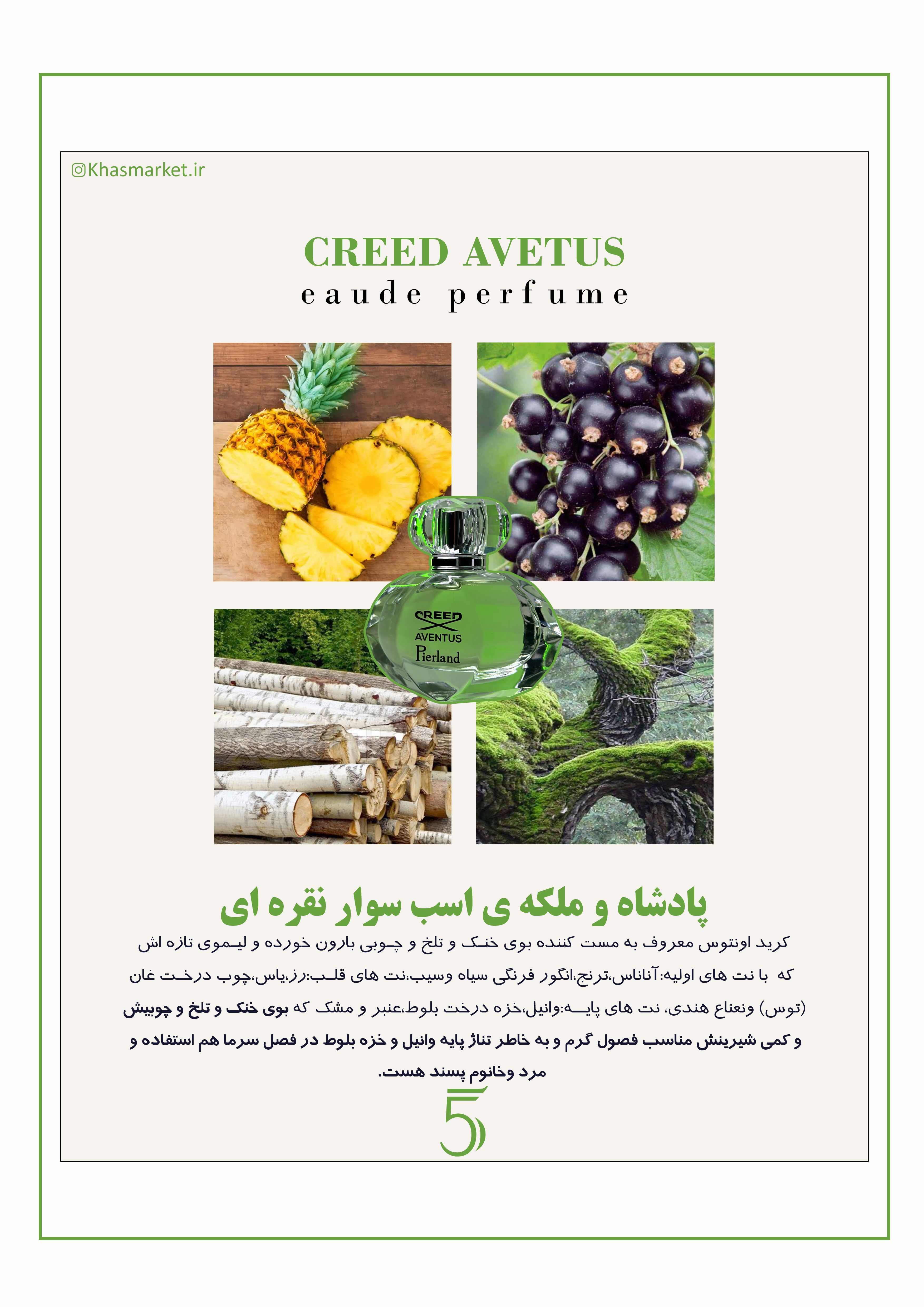 معروف به مست کننده بوی خنک و تلخ و و چوبی و بارون خورده و لیموی تازه اش...با نت های سر آناناس و انگور فرنگی و قلب رز و یاس چوب درخت توس و نعناع هندی و نت های پایه وانیل و خزه درخت بلوط بوی خنک و تلخ و چوبیش مناسب فصول گرم و برای تناژپایه چوبیش و خزه دارشدر فصل سرما هم استفاده میشه و مردونه و خانوم پسنده...این ادکلن وارداتیه و ضمانت اصالت و کیفیت ادکلن و ماندگاری بالا و خط بوی قری و پخش بوی عمیق داریم چرا که با هر سفارشتون یه دکانت هدیه رایگان ارسال میکنیم اگه نپسندیدین اون دکانت هدیه ما به شماست..و کل مبلغ عودت میدیم بهتون ولی تا حالا مرجوع نداشتیم و تعدادش هر لحظه ممکنه تموم بشه پس تا هست خاص باشین و به ارسال رایگان و این همه مزایاش برسونین خودتونو🪵🍍